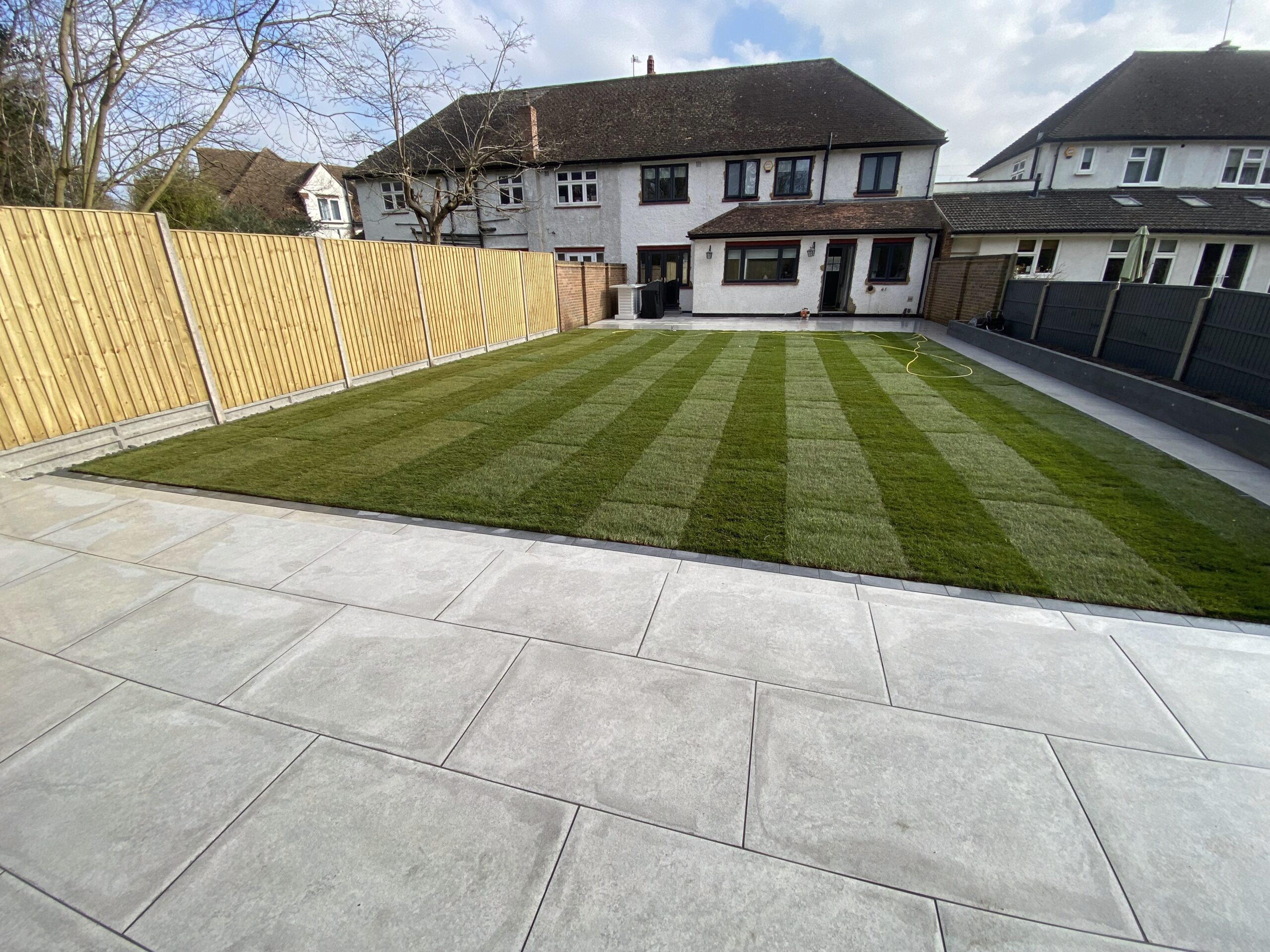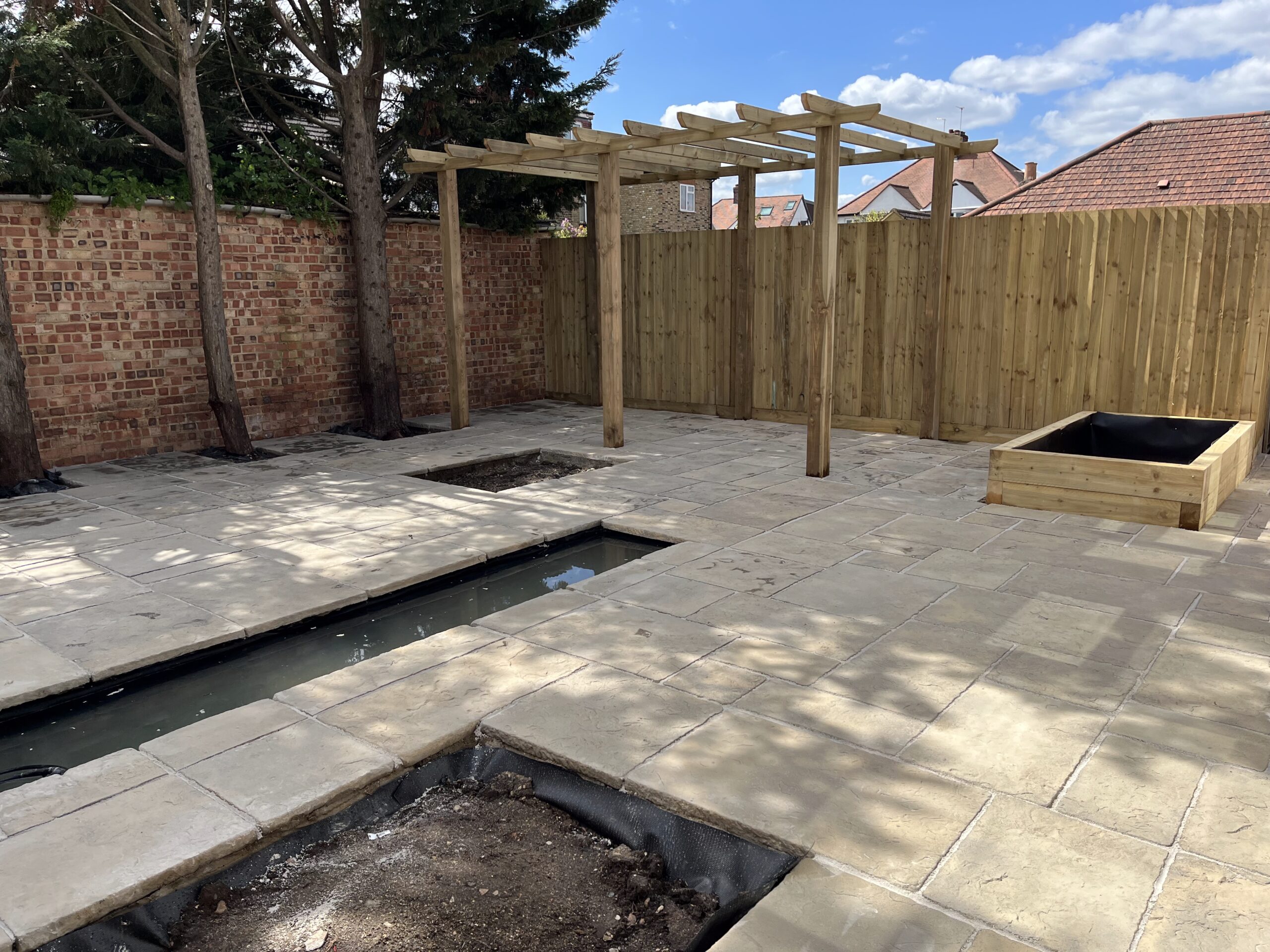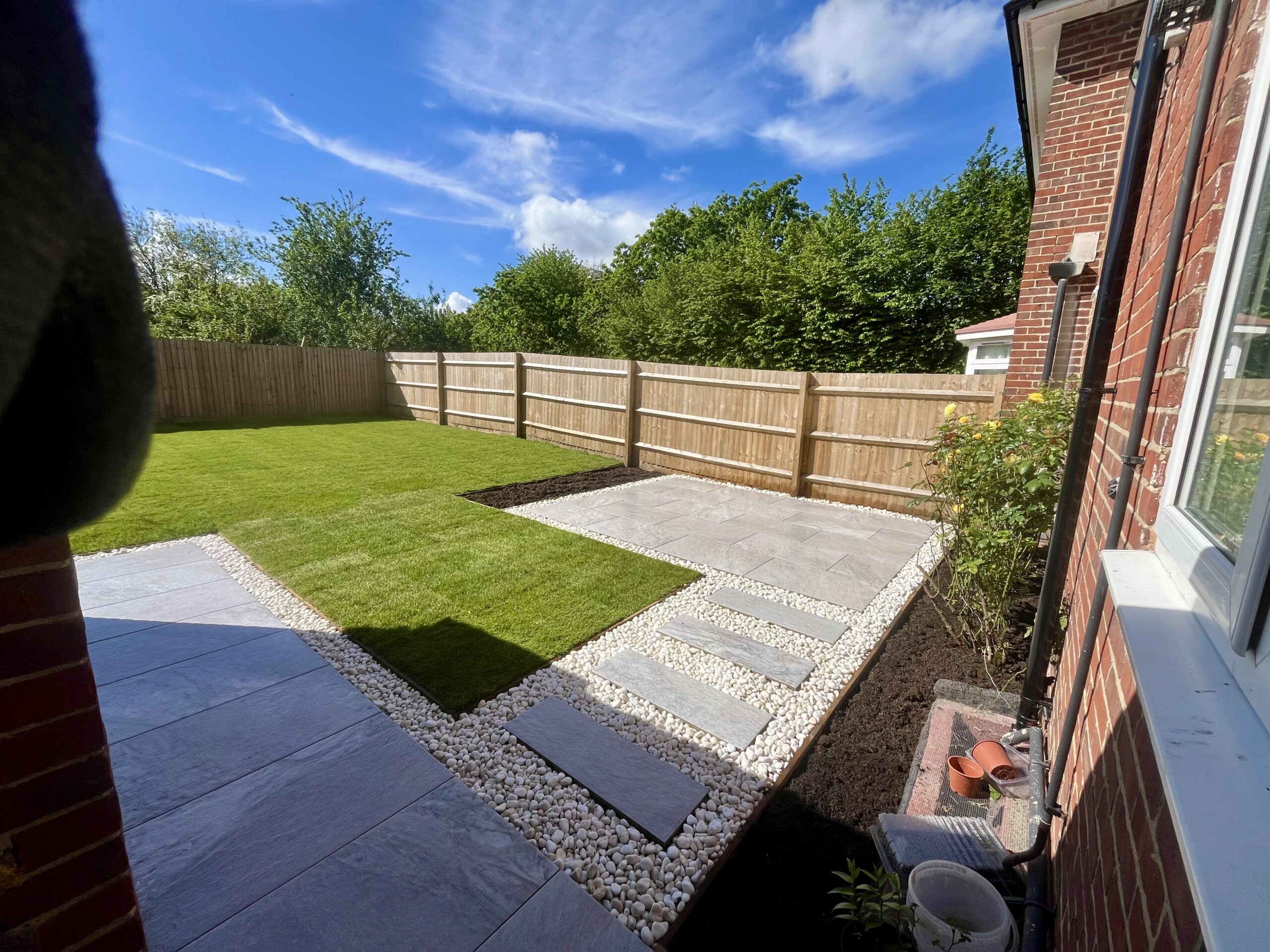 We handle everything related to hard landscaping: patios, driveways, decking, fencing, artificial grass, pergolas, garden design, and groundwork.