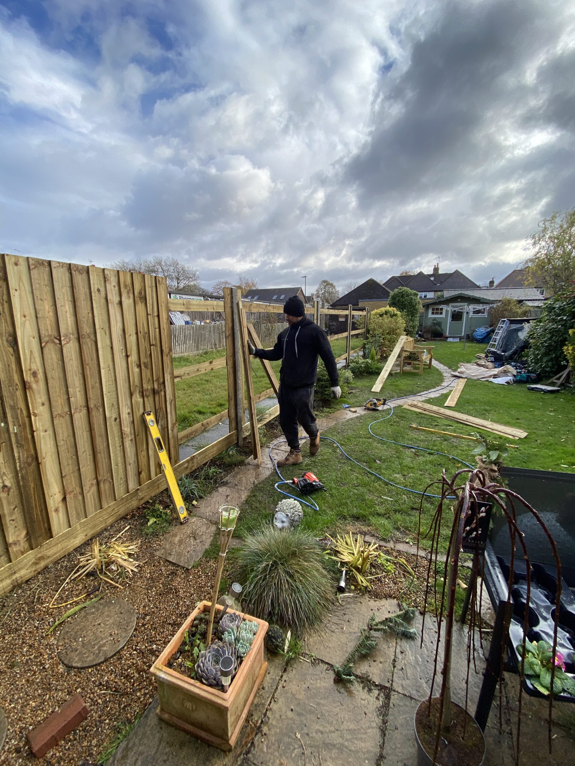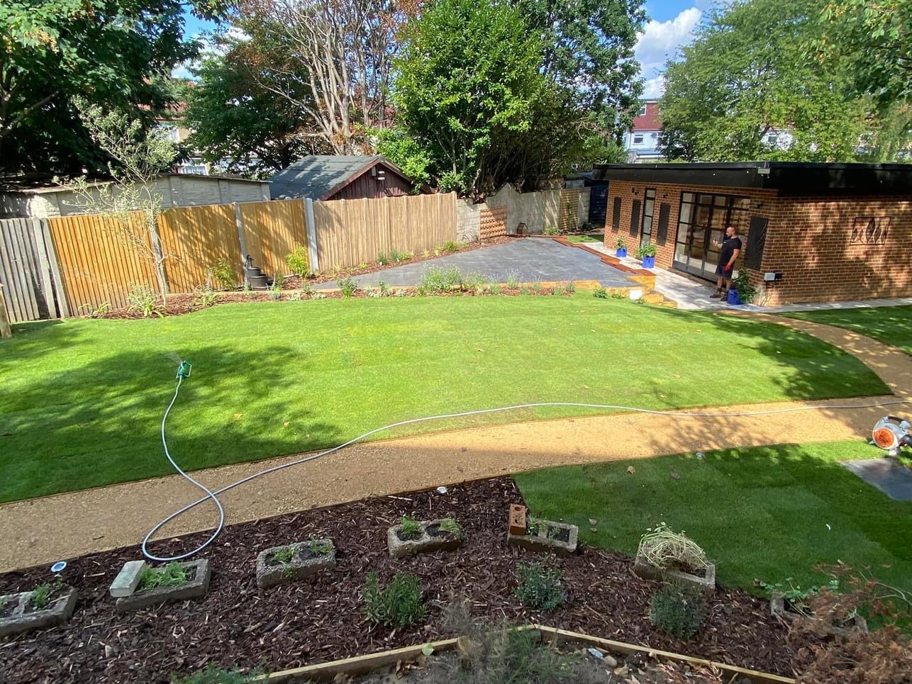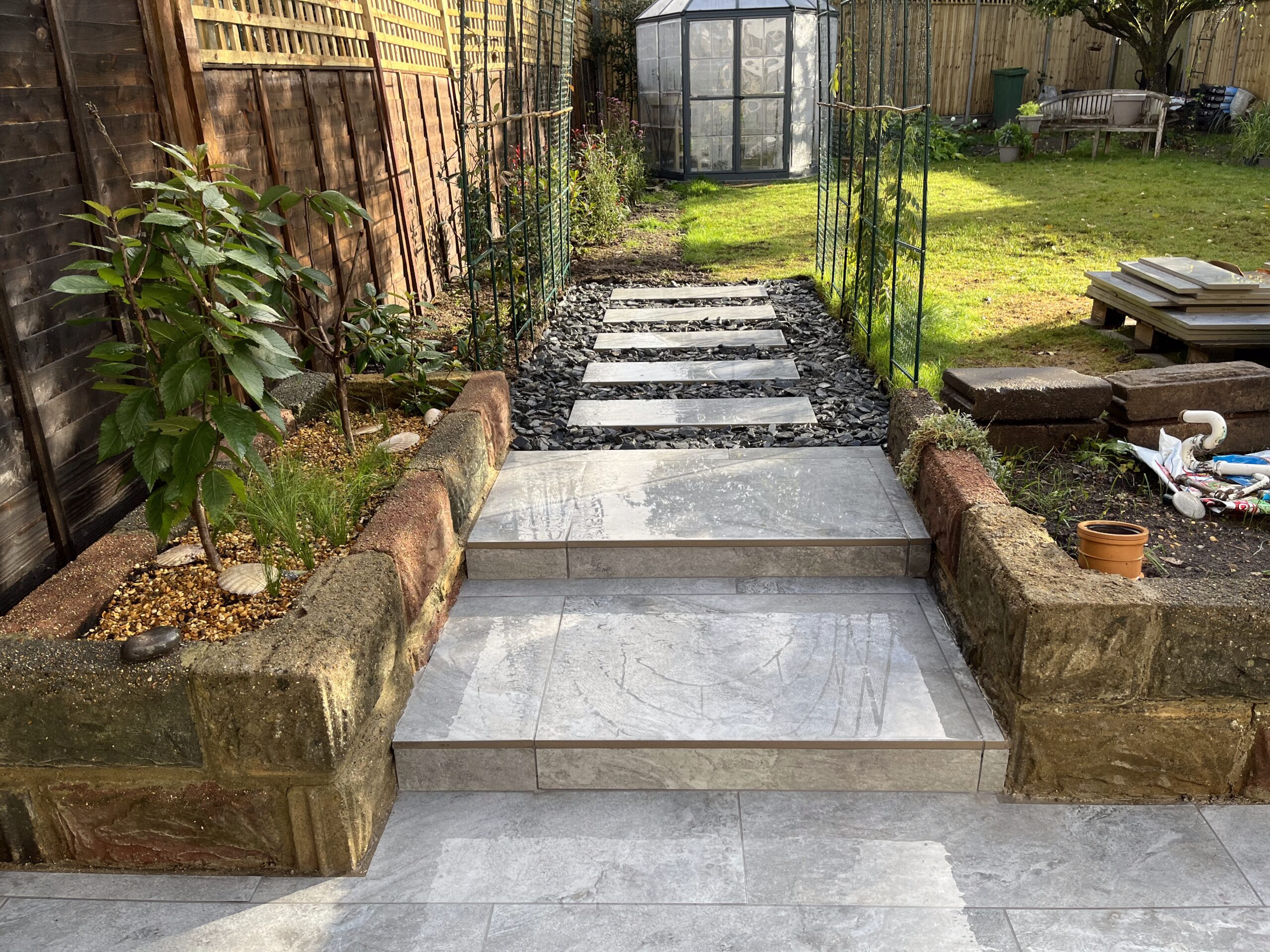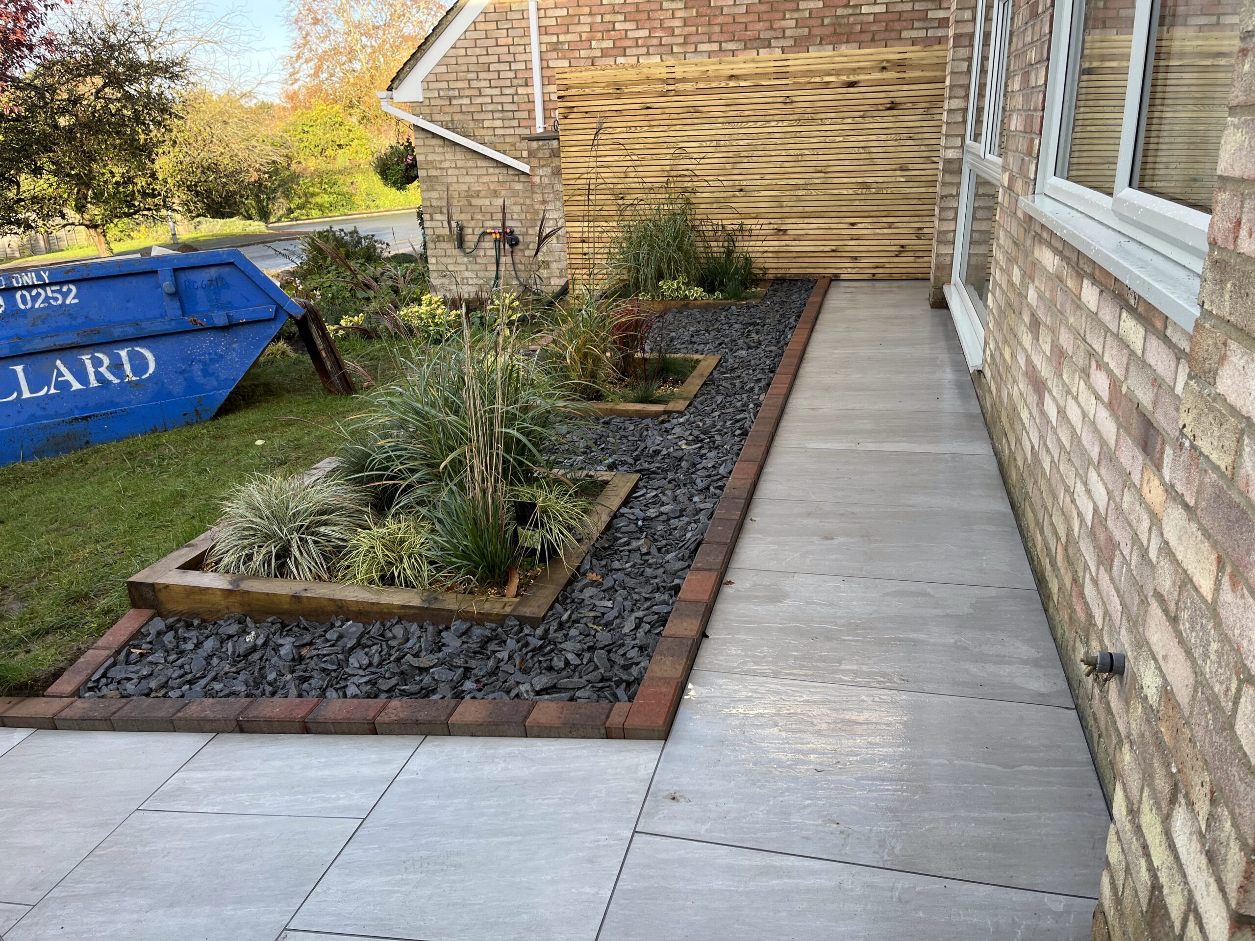 We handle everything related to hard landscaping: patios, driveways, decking, fencing, artificial grass, pergolas, garden design, and groundwork.